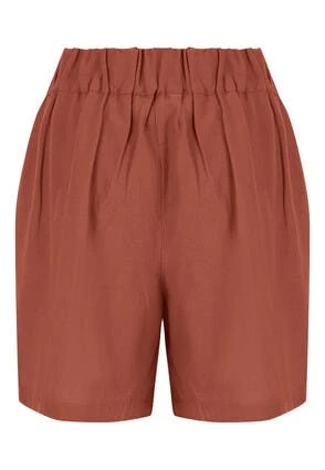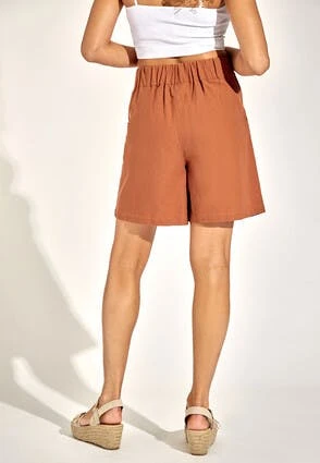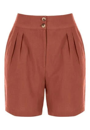 Add an element of luxury with these brown cotton and linen mix shorts, they will be a great addition to your wardrobe. Features a double button and zip fastening and an elasticated waistband. Tailored at the hip for a smart look, pair with a coordinating shirt.