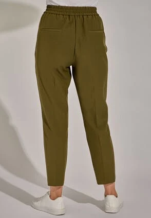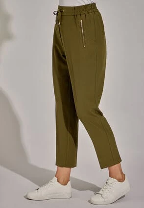 These stylish trousers will make a versatile and practical addition to your everyday wardrobe. In a khaki green with a tapered leg, front zip pockets, and a comfortable elasticated back, these pull-on jogger style trousers are a smart option suitable for work or any occasion.