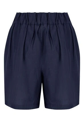 Add an element of luxury with these navy cotton and linen mix shorts, they will be a great addition to your wardrobe. Features a double button and zip fastening and an elasticated waistband. Tailored at the hip for a smart look, pair with a coordinating shirt.
