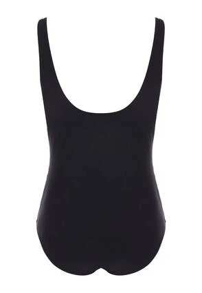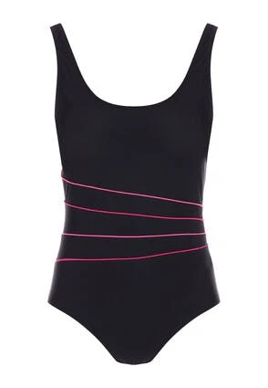This sports swimsuit is ideal for everyday use at the local pool, or as a stylish addition to your holiday wardrobe. In black, with four bright pink stripes across the waist, this one-piece swimsuit is a swimwear must-have.