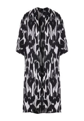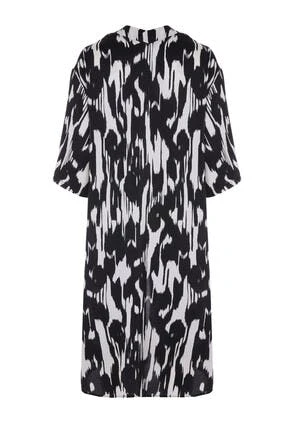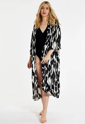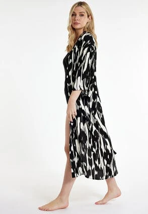 With its pretty black and white abstract print, this kimono brings a touch of glamour to your wardrobe. The design is cut in an easy regular fit, this easy-to-wear wardrobe staple can be worn on the beach or dressed up with the matching co-ords.