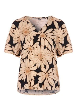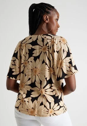 This gorgeous blouse in a bold daisy print will make the perfect addition to your new season wardrobe. Features loose fitting angel sleeves, plus a v-neckline, and a pretty all-over large floral print.