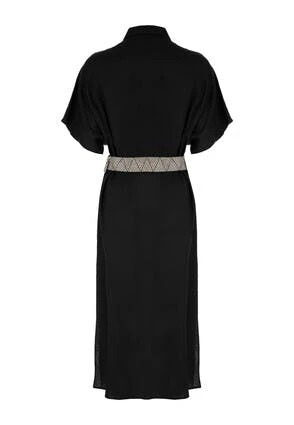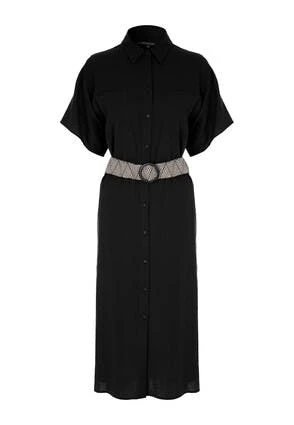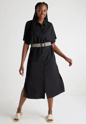 This lovely linen-blend midi dress will make a stylish addition to your new season wardrobe. In a classic black with a collar neckline, and a flattering, contrasting woven belt, it can be dressed up or down with ease.