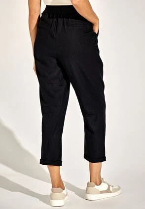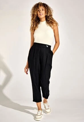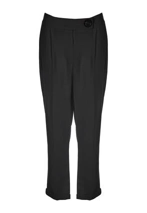 These gorgeous trousers will make a versatile and practical addition to your everyday wardrobe. In black with a rolled hem , front pockets, concealed zip fastening, and a tortoiseshell effect button, they’re a smart option suitable for work or any occasion.