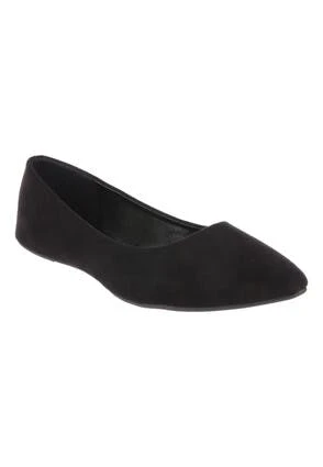 Update your footwear collection with these stylish slip-on ballet pumps. In a black suedette effect finish with a pointed toe, these are a great flat shoe to add to almost any outfit for a smart casual look