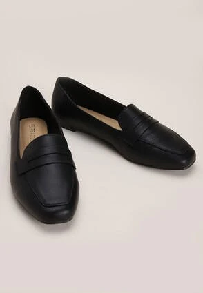 Update your footwear collection with these stylish slip-on loafers. In a black leather-look finish with a square toe, these are a great shoe to add to almost any outfit for a smart casual look.