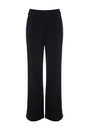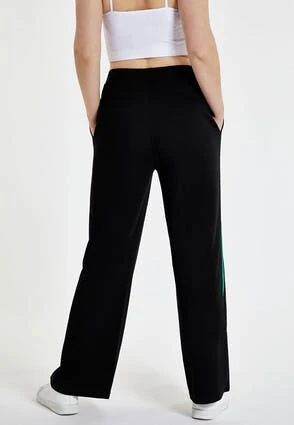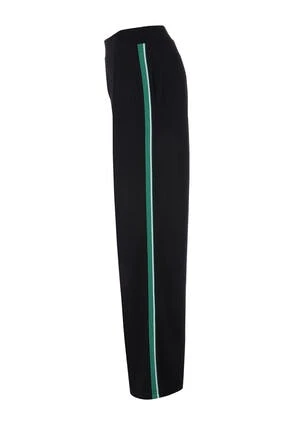 Add to your trousers collection with these smart yet comfortable women’s pull-on wide leg trousers. In black with a front seam detail and green and white stripe, they’re a stylish option for any occasion!