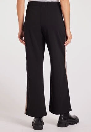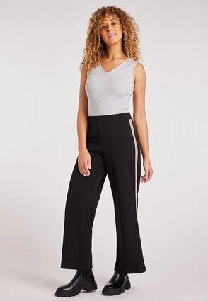 Add to your trousers collection with these stylish women’s wide leg trousers with a stone and white side stripe design! In black these jogger style trousers are a stylish option for any occasion!