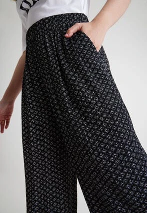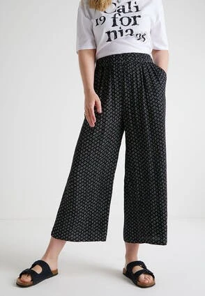 These lovely wide leg cropped culottes in black will make a stylish addition to your new season wardrobe. In a crinkle textured fabric with a hint of stretch and a comfortable drawstring waistband, they can be dressed up or down with ease.