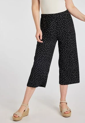 Add to your collection of stylish trousers, with these jersey wide leg culotte. In a light fabric, featuring an elasticated waist, they can be dressed up or down for any occasion.