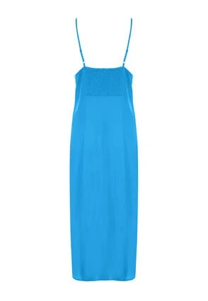 Update your summer style with this womens aqua blue strappy linen blend slip on dress. With a shirred back panel for added comfort and adjustable thin straps. This midi length dress really is the summer dress to have this season.