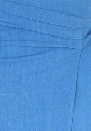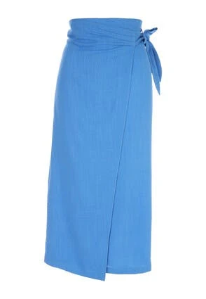 Add some elegance to your new season wardrobe with this gorgeous sky blue wrap skirt. Features a comfortable elasticated back, a side split, plus a lovely linen blend fabric.