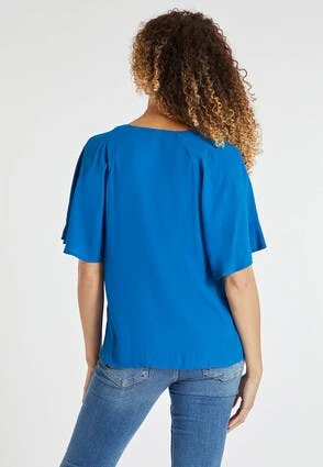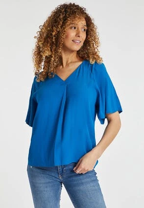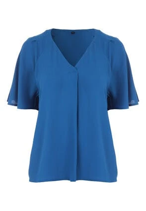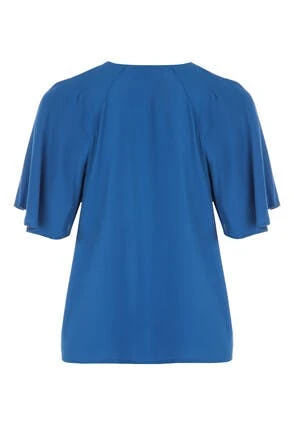 This gorgeous blouse in royal blue will make a versatile addition to your new season wardrobe. In a luxurious soft textured fabric, it features short angel sleeves, and a v-neckline.