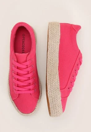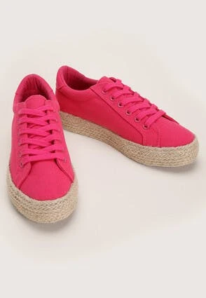 These womens casual espadrille trainer will make a versatile addition to your everyday footwear collection. In bright pink featuring a lace up design with a platform base detailing and matching laces, they’re perfect for casual wear.