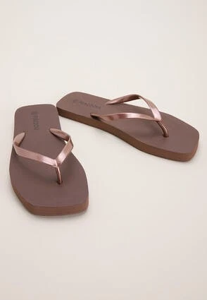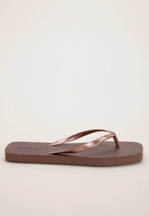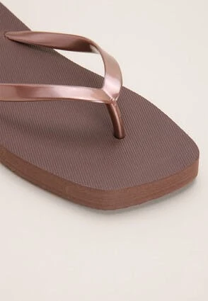 Get beach or garden ready with these classic flip flops. Features a toe post with a slight metallic sheen, the plain brown base with square front is made for easy styling with any outfit