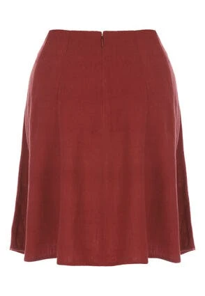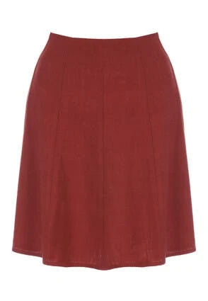Refresh your wardrobe with this gorgeous burgundy skirt. In a lovely linen blend fabric, this flippy skirt flares out in an ultra flattering high waisted design. Wear with a loose fitted shirt and sandals for an effortlessly cool look