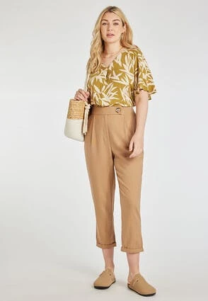 These gorgeous trousers will make a versatile and practical addition to your everyday wardrobe. In camel with a rolled hem , front pockets, concealed zip fastening, and a tortoiseshell effect button, they’re a smart option suitable for work or any occasion.
