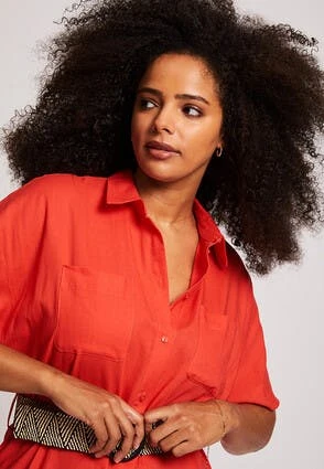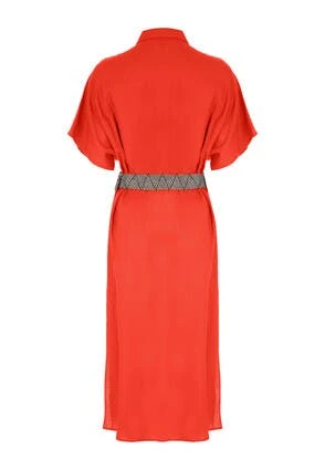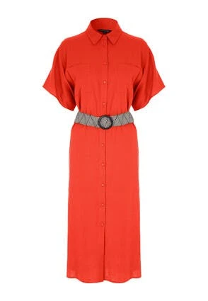 This lovely linen-blend midi dress will make a stylish addition to your new season wardrobe. In a gorgeous coral with a collar neckline, and a flattering, contrasting woven belt, it can be dressed up or down with ease.