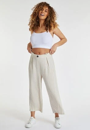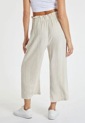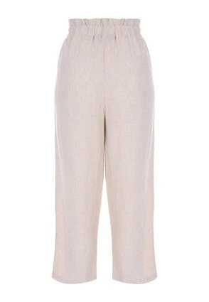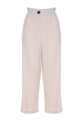 These lovely trousers in oatmeal cream will make a stylish addition to your spring/summer wardrobe. With a wide cropped leg and a high paper-bag style elasticated waist, they can be dressed up or down with ease.