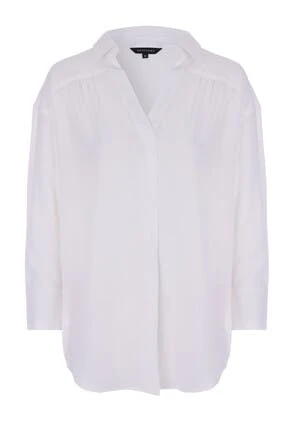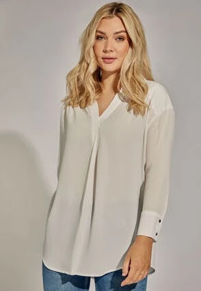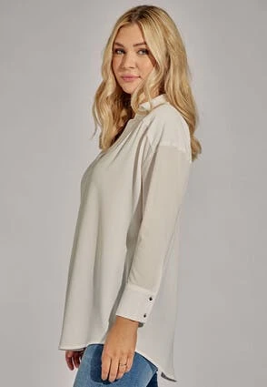This gorgeous shirt in cream will make a versatile addition to your new season wardrobe. In a luxurious soft textured fabric, it features cuffed sleeves, and a collar neckline.
