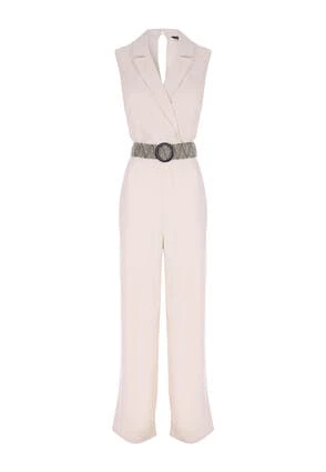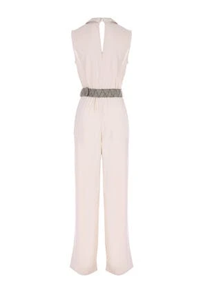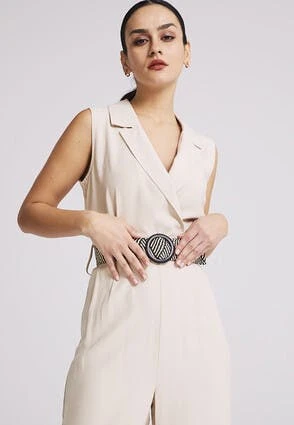 This tailored jumpsuit will make a stylish addition to your new season wardrobe. In a classic style with a v collar neckline, this sleeveless jumpsuit with slightly flared legs and a flattering contrasting woven waist belt, can be dressed up or down with ease.
