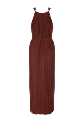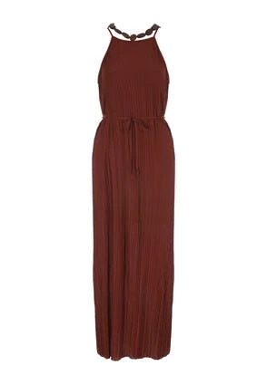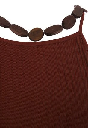 Update your dress collection with this stylish halter neck summer dress with a detachable wooden necklace. In a floaty textured plisse fabric, and featuring a flattering elasticated waist, it’s an essential item for your spring/summer wardrobe.