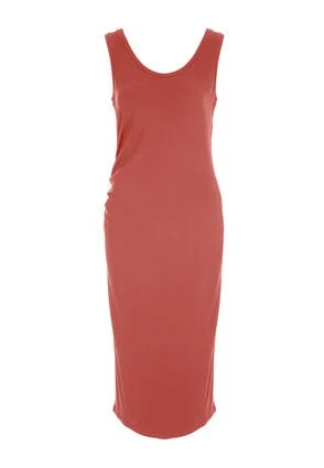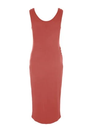Update your new season wardrobe with this stylish midi dress. In deep orange it can be dressed up or down, perfect for any occasion. With a ruched side for a flattering fit. Simply add sandals and a straw bag for a spring/summer outfit.