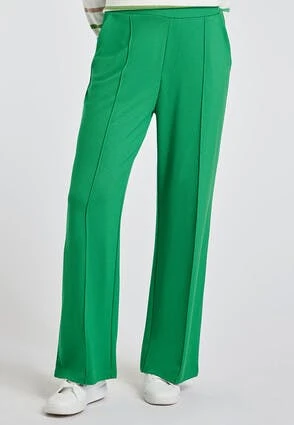 Add to your trousers collection with these smart yet comfortable women’s pull-on wide leg trousers. In a forest green with a front seam detail, they’re a stylish option for any occasion!