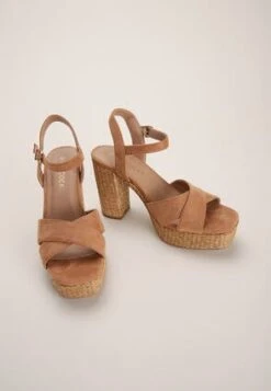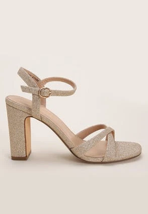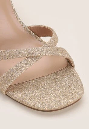 These gorgeous high heeled shoes in gold are ideal for smart occasions or evenings out! In a gold glitter fabric with a block heel, these stylish sandals are perfect worn with a dress or skinny jeans.