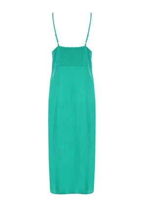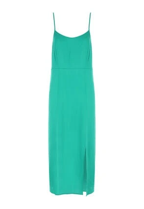 Update your summer style with this womens green strappy linen blend slip on dress. With a shirred back panel for added comfort and adjustable thin straps. This midi length dress really is the summer dress to have this season.