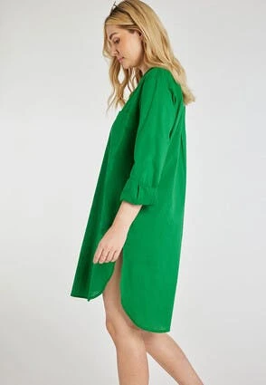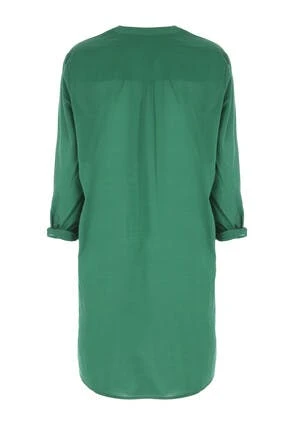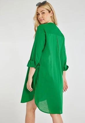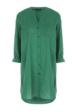 Add to your summer wardrobe with this green beach longline shirt. Featuring rolled sleeves a button down front, with a v-neckline and side splits. Made from 100% breathable cotton fabric, it’s perfect for throwing on over a swimsuit or as a cover up from the sun!