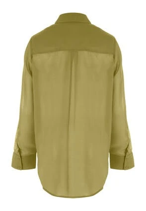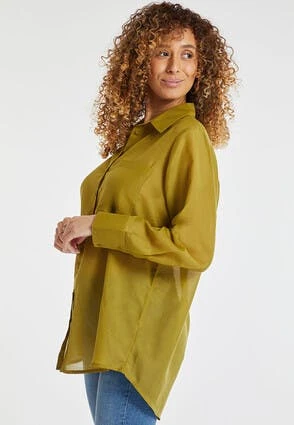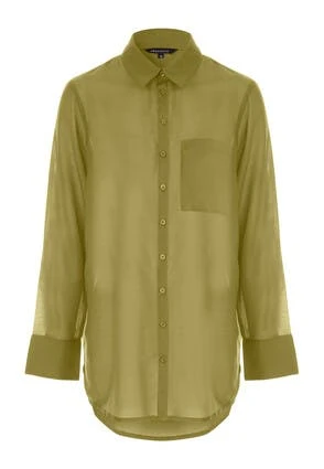 This beautiful women’s shirt will make the perfect addition to your new season wardrobe. In a super lightweight sheer fabric it also features long sleeves, a button up shirt neckline, and a breast pocket.