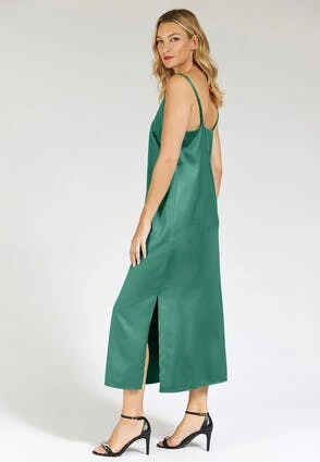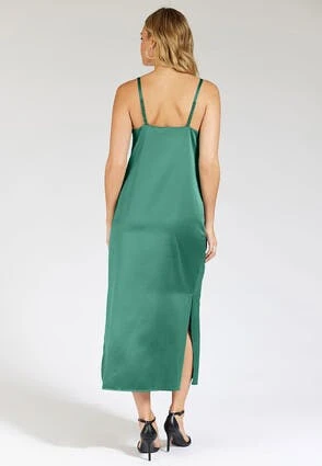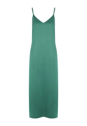 Add some simple style to your winter wardrobe with this lovely women’s slip dress in green! In a plain green satin-look fabric, its a stylish and versatile option for any occasion!