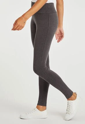 Leggings are a wardrobe essential! This grey pair features a wide waistband and stretch fit, making them perfect for casual wear.