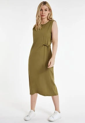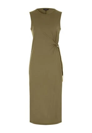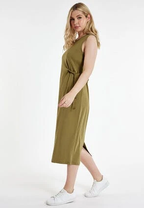 Create a stunning summer look in this plain cotton dress with side tie detail. With a sleeveless cut and over the knee length this is the perfect spring/summertime dress. Team with sandals, and oversized hat and shades for a complete look.