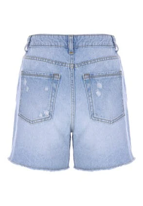 These casual mid length denim shorts will make a versatile addition to your new season wardrobe. In a light blue relaxed fit distressed denim with front and back pockets, and a frayed hem, they’re easily dressed up or down for any occasion.