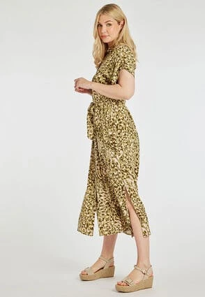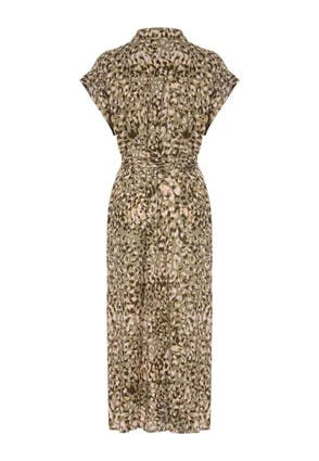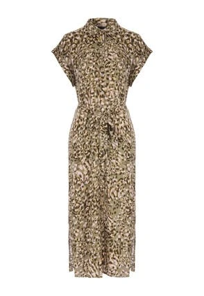 Add to your new season wardrobe with this gorgeous leopard print shirt dress. In light green with an all over leopard print design, it also features a collar with buttons to the hemline, and short capped sleeves. Pair with summer sandals or mini boots for an effortless outfit.