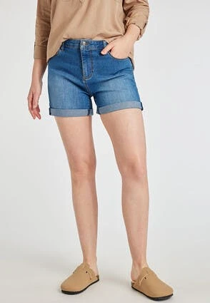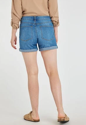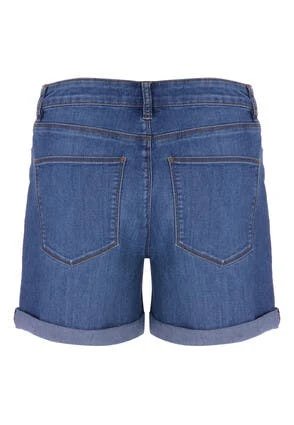 These casual mid length denim shorts will make a versatile addition to your summer wardrobe. In mid blue denim with front and back pockets and a rolled hem. They’re easily dressed up or down for any occasion.