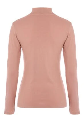 Update your collection of wardrobe essentials with this versatile long sleeved top. In a mocha brown jersey fabric with long sleeves and a roll neckline, its an ideal layering piece for any time of year.