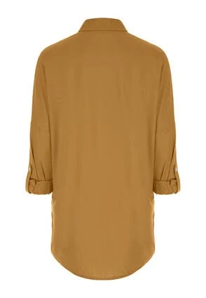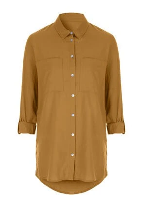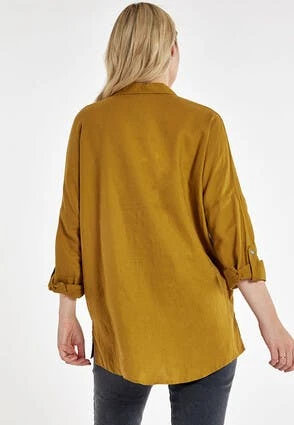 Add an element of luxury with this mustard cotton and linen mix shirt, with three quarter length sleeves, turn up cuffs and on trend white buttons, this shirt is the look of the season. Pair with the coordinating shorts for the perfect coord.