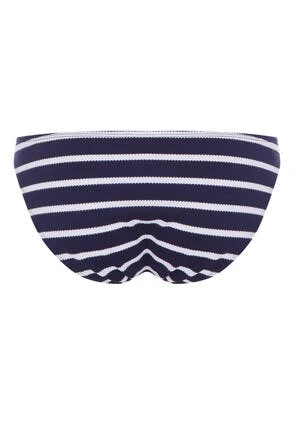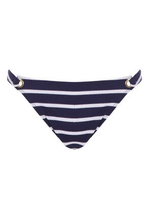 Get holiday ready with these gorgeous blue and white striped bikini bottoms. Featuring textured fabric, gold eyelet detailing and a full brief. Matching bikini top available.