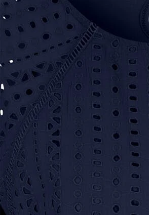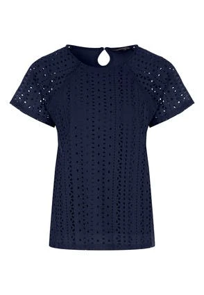 Add this womens top to your new season wardrobe. This broidery anglaise top features a full front panel in brodiery with matching flowing short sleeves and a round neckline. Pair with shorts or jeans this summer season.