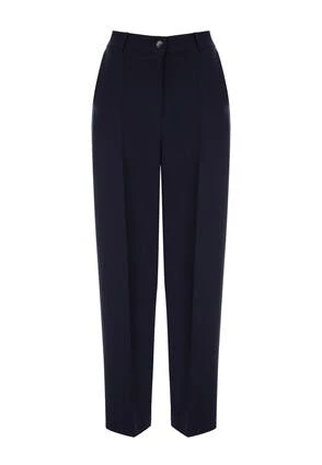These gorgeous trousers will make a versatile and practical addition to your everyday wardrobe. In navy with a wide leg, front pockets, concealed zip fastening, and a wide waistband with large tortoiseshell effect button, they’re a smart option suitable for work or any occasion.