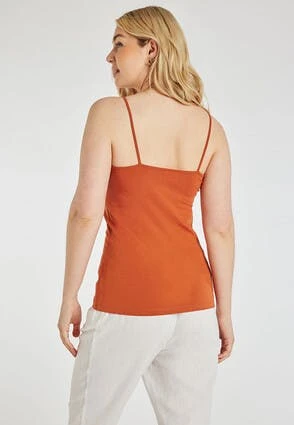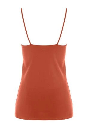 Update your basics with this orange stretch cami vest. Features thin straps and a scoop neckline. It is a great addition to your wardrobe.