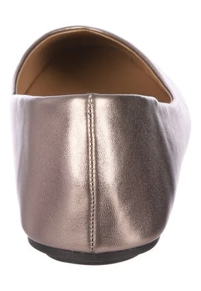 Update your footwear collection with these classic slip-on ballet pumps. In a metallic pewter leather-look finish with a pointed toe, these are a comfortable and practical flat shoe to add to almost any outfit for a smart casual look.