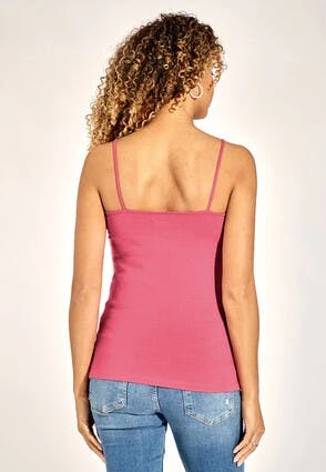 Update your basics with this hot pink stretch cami vest. Features thin straps and a scoop neckline. It is a great addition to your wardrobe.