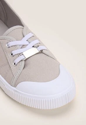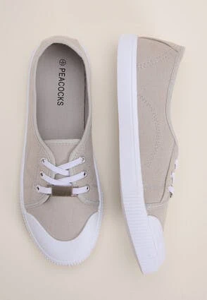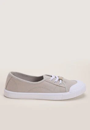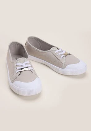 These womens slip on trainers will make a versatile addition to your footwear collection. In a lovely stone colour featuring a lace up design with a metal lace tag on a flat white sole – they’re perfect for everyday casualwear.