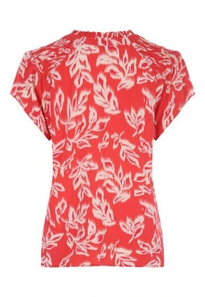 This lovely womens blouse in a pretty leaf print will make the perfect addition to your new season wardrobe. Features a short sleeves with a v-neckline and shirring details on the sleeves.