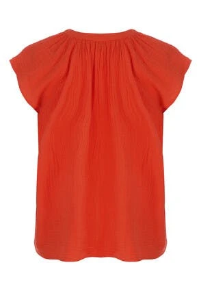 This lovely womens shell top in red is perfect for your everyday essentials. In an all-over textured design, it features short capped sleeves, and a v-neckline.