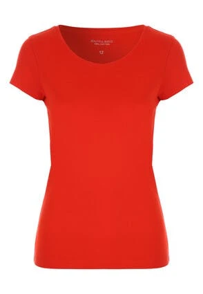 A plain t-shirt is a great wardrobe staple and this crew neck tee is perfect for everyday wear. Style this red t-shirt in a casual way or wear it with trousers and a blazer for a smart look. Features short sleeves and a crew neckline.